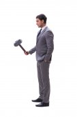 Zdjęcie "Biznes człowiek trzyma młotek odizolowany na biały" może być wykorzystywane do celów osobistych i komercyjnych zgodnie z warunkami zakupionej licencji Royalty-free. Obraz jest dostępny do pobrania w jakości wysokiej rozdzielczości do 5760x3840.