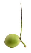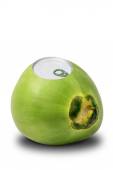 Świeży kokos na białym tle z można otworzyć narzędzie na górze