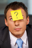biznesmen z głową w ręce
