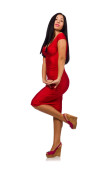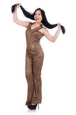 Młody model w garniturze z odciskiem lamparta na białym