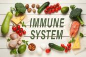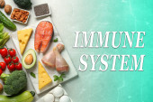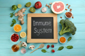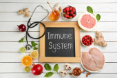 Zdjęcie "Układ immunologiczny wzmacniający z prawidłowym odżywianiem. Różne produkty spożywcze i talerz łupkowy, układanie płaskie" może być wykorzystywane do celów osobistych i komercyjnych zgodnie z warunkami zakupionej licencji Royalty-free. Obraz jest dostępny do pobrania w jakości wysokiej rozdzielczości do 5760x3840.
