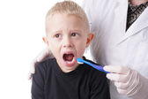 mały chłopiec jest zastrzyk przez lekarza rodzinnego