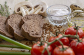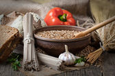 Zbożowe Kasza gryczana w misce na drewnianym stole