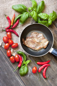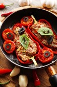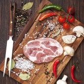 Mięso z warzywami na drewnianym stole