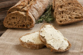 świeżo upieczony tradycyjny chleb z masłem