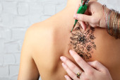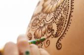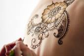 Zdjęcie "Modele z powrotem z pięknym wzorem henna" może być wykorzystywane do celów osobistych i komercyjnych zgodnie z warunkami zakupionej licencji Royalty-free. Obraz jest dostępny do pobrania w jakości wysokiej rozdzielczości do 5760x3840.