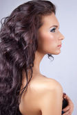 młoda kobieta z długie kręcone włosy
