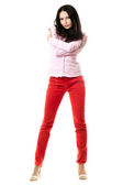 Zdjęcie "atrakcyjna młoda brunetka w czerwone dżinsy" może być wykorzystywane do celów osobistych i komercyjnych zgodnie z warunkami zakupionej licencji Royalty-free. Obraz jest dostępny do pobrania w jakości wysokiej rozdzielczości do 5760x3840.