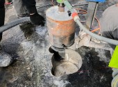 Menthon Saint Bernard, Francja - 07 września 2021 r.: profesjonalny pracownik jest zajęty pompownią i wężem pod wysokim ciśnieniem czyszczącym rurę kanalizacyjną