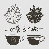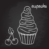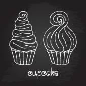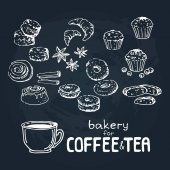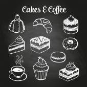 Poranna kawa i ciastko na tablica tło. Kreda krawiecka projektowanie. Ilustracja wektorowa, e p s 1 0.
