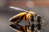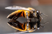 Zdjęcie "Dziki trzmiel amerykański - Bombus pensylvanicus - latający w powietrzu ze skrzydłami wyciągniętymi. Izolacja na szarym tle niebieski profil boczny" może być wykorzystywane do celów osobistych i komercyjnych zgodnie z warunkami zakupionej licencji Royalty-free. Obraz jest dostępny do pobrania w jakości wysokiej rozdzielczości do 5760x3840.