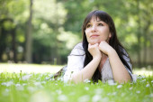 młoda kobieta, leżąc na łące