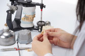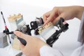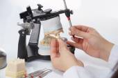 Technik dentystyczny pracujący z artykulatorem w laboratorium stomatologicznym