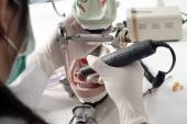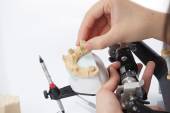 Technik dentystyczny pracujący z artykulatorem w laboratorium stomatologicznym