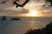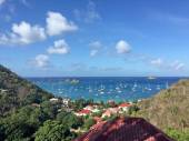 Saint Barthelemy (St Barth, St. Barths or St. Barts): sailboats moored in the secluded Colombier beach and bay, called Rockefeller beach because David Rockefeller owned the property around it