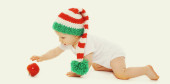 Słodkie dziecko kapelusz GNOME siedząc i patrząc w górę