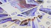 50 funtów szterlingów banknoty zbliżenie zobacz tło działalności