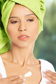 Zdjęcie "Kobieta kurort z balsam pod oczy." może być wykorzystywane do celów osobistych i komercyjnych zgodnie z warunkami zakupionej licencji Royalty-free. Obraz jest dostępny do pobrania w jakości wysokiej rozdzielczości do 5760x3840.