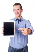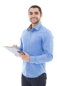 portret przystojny fitness trener w odzieży sportowej z clipboar
