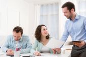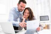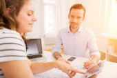 Młody atrakcyjny pracodawca analizowania Wznów kobiety