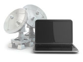serwer połączony za pośrednictwem satelity. na białym tle