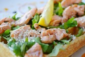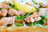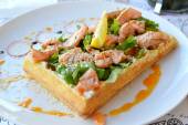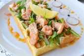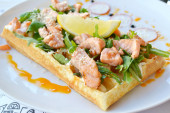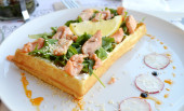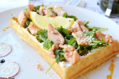 Belgijski wafel z rukolą, sosem śmietanowym i Łosoś pieczony