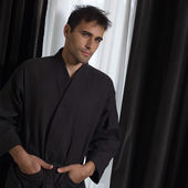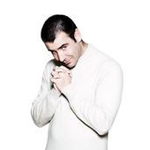 przystojny ściernisko stylowy mężczyzna portret poważne puste wyrażenie