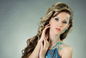 portret uśmiechający się bardzo młoda dziewczyna z włosów długich loków