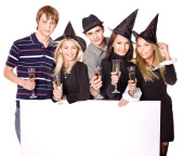 Grupa młodych, picie szampana.