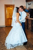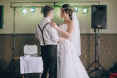 piękna para kaukaski tylko żona i taniec ich pierwszy taniec.