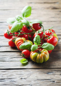 Zdjęcie "Wiśniowe pomidory i liści bazylii" może być wykorzystywane do celów osobistych i komercyjnych zgodnie z warunkami zakupionej licencji Royalty-free. Obraz jest dostępny do pobrania w jakości wysokiej rozdzielczości do 5760x3840.