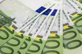 Widok z bliska kilku banknotów euro wyświetlanych razem.