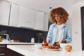 Zdjęcie "Kobieta przygotowuje zdrowy posiłek ze świeżych warzyw i oliwy z oliwek w nowoczesnym wnętrzu kuchni" może być wykorzystywane do celów osobistych i komercyjnych zgodnie z warunkami zakupionej licencji Royalty-free. Obraz jest dostępny do pobrania w jakości wysokiej rozdzielczości do 5760x3840.