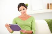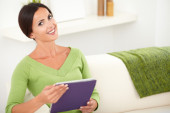 Zdjęcie "Beztroski kobieta trzymając tabletkę" może być wykorzystywane do celów osobistych i komercyjnych zgodnie z warunkami zakupionej licencji Royalty-free. Obraz jest dostępny do pobrania w jakości wysokiej rozdzielczości do 5760x3840.