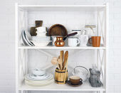 Zdjęcie "Regały z kuchni na tle ściany Cegła biała kuchnia" może być wykorzystywane do celów osobistych i komercyjnych zgodnie z warunkami zakupionej licencji Royalty-free. Obraz jest dostępny do pobrania w jakości wysokiej rozdzielczości do 5760x3840.