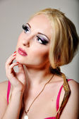 Modna kobieta na czerwonym tle