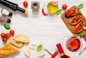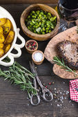 Tradycyjne przekąski w formie bufetu na drewnianym stole z góry