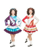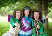 Trzy młode piękne dziewczyny w irlandzki taniec ubierać pozowanie odkryty