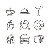 Zdjęcie "Jedzenie kawiarnia zestaw rano śniadanie obiad lub kolacja kuchnia doodle ręka szkic szorstki prostych ikon kawy, herbaty, Pączek, czajnik, ciastko, dżem i inne słodycze" może być wykorzystywane do celów osobistych i komercyjnych zgodnie z warunkami zakupionej licencji Royalty-free. Obraz jest dostępny do pobrania w jakości wysokiej rozdzielczości do 5760x3840.