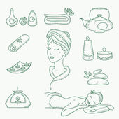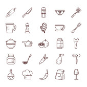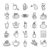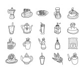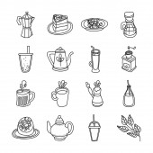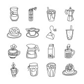 Jedzenie kawiarnia zestaw rano śniadanie obiad lub kolacja kuchnia doodle ręka szkic szorstki prostych ikon kawy, herbaty, Pączek, czajnik, ciastko, dżem i inne słodycze