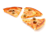 smaczna pizza z oliwkami izolowanymi na biało