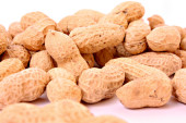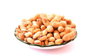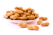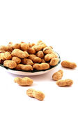 orzeszki ziemne z muszli na płytkę na białym tle