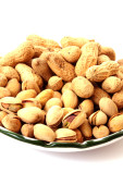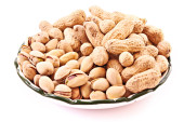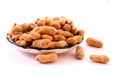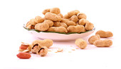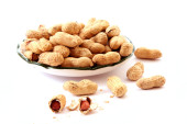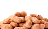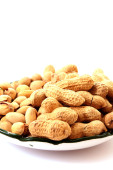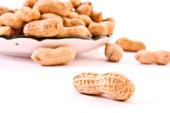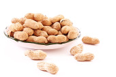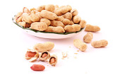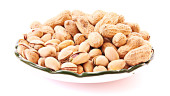 kilka orzeszków ziemnych i danie na białym tle