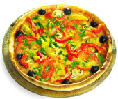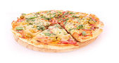 smaczna pizza z oliwkami izolowanymi na biało