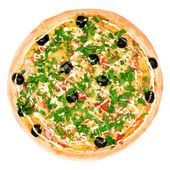 smaczna pizza z oliwkami izolowanymi na biało