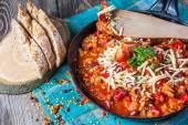 Zdjęcie "Chili con carne z serem." może być wykorzystywane do celów osobistych i komercyjnych zgodnie z warunkami zakupionej licencji Royalty-free. Obraz jest dostępny do pobrania w jakości wysokiej rozdzielczości do 5760x3840.