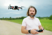 Zdjęcie "Operator dronów trzymający pilota i drona w rękach. Zacznij latać z ręki. Pilot drona uwalnia kamerę z jego ręki. Fotografia i wideo z lotu ptaka." może być wykorzystywane do celów osobistych i komercyjnych zgodnie z warunkami zakupionej licencji Royalty-free. Obraz jest dostępny do pobrania w jakości wysokiej rozdzielczości do 5760x3840.