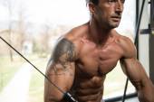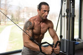 Zgrywanie dojrzały mężczyzna w nowoczesnym centrum Fitness