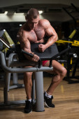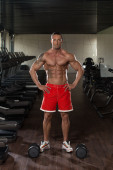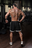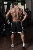 Człowiek w siłowni pokazano jego ciało dobrze wyszkolonych