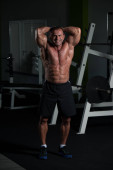 Człowiek w siłowni pokazano jego ciało dobrze wyszkolonych